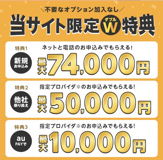 キャッシュバック 最大45,000円セット割 au・UQモバイル