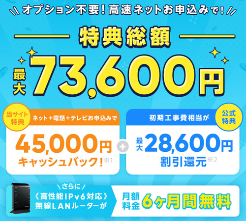 工事料実質0円や乗り換え特典もあるので、料金と利便性の両方を重視したい人には有力な選択肢といえるでしょう。
